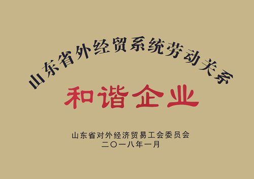 ★ 2018年被山東省對外經濟貿易工會委員會評選為《山東省外經貿系統勞動關系和諧企業》;