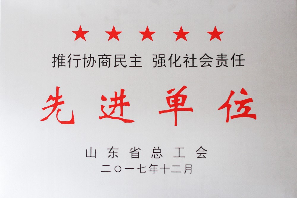 ★ 2017年被山東省總工會評選為《推行協商民主 強化社會責任先進單位》;
